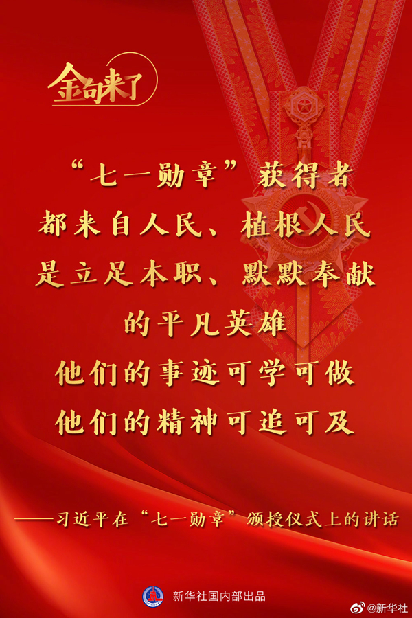 習(xí)近平說(shuō),“七一勛章”獲得者都來(lái)自人民、植根人民,是立足本職、默默奉獻(xiàn)的平凡英雄。他們的事跡可學(xué)可做,他們的精神可追可及。他們用行動(dòng)證明,只要堅(jiān)定理想信念、堅(jiān)定奮斗意志、堅(jiān)定恒心韌勁,平常時(shí)候看得出來(lái)、關(guān)鍵時(shí)刻站得出來(lái)、危難關(guān)頭豁得出來(lái),每名黨員都能夠在民族復(fù)興的偉業(yè)中為黨和人民建功立業(yè)!