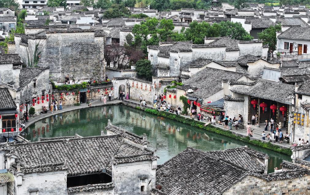 当日是国庆假期首日,世界文化遗产地安徽黄山西递宏村迎来大批游客,古朴典雅的徽派建筑和水乡美景让游人流连忘返。