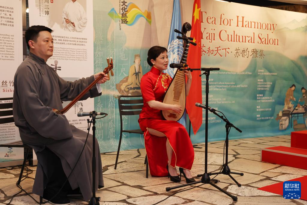 新华社巴黎7月11日电(记者张百慧)“茶和天下·苏韵雅集”活动11日在位于法国巴黎的联合国教科文组织总部举行,通过主题展、实物展和文艺表演等形式,全面介绍了茶的历史、茶与生活、茶与文化、茶与观光等内容。