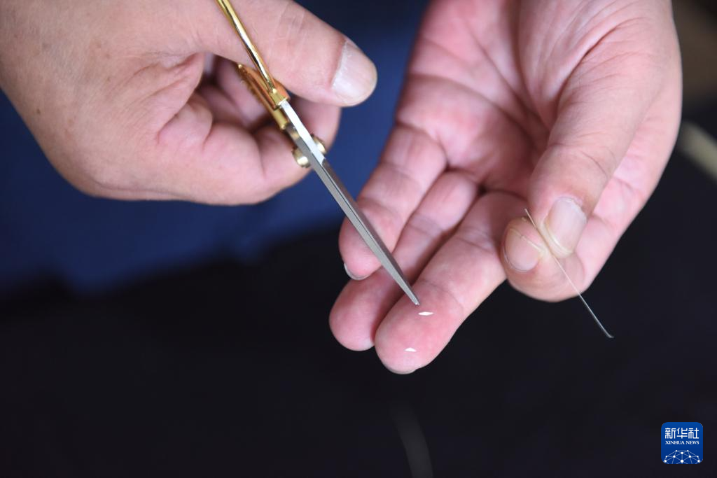 7月12日,吴永龙将细小的“零件”从麦秆做成的条片上剪下。