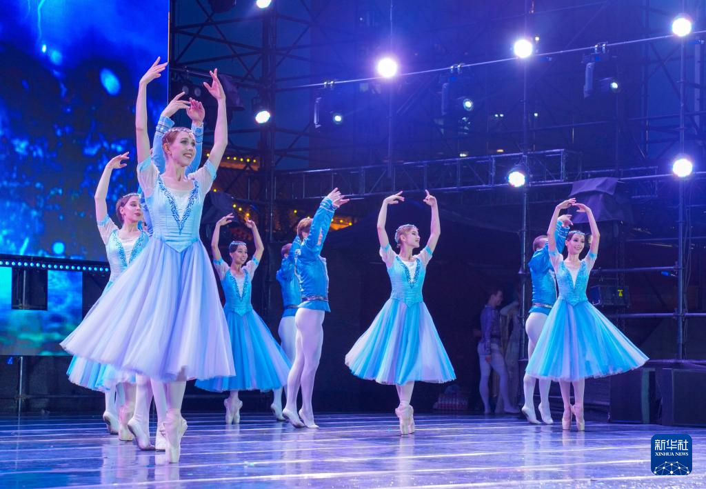 这是7月14日在长春文庙广场拍摄的俄罗斯马里埃尔国家模范歌剧舞剧院芭蕾舞剧《天鹅湖》演出现场。