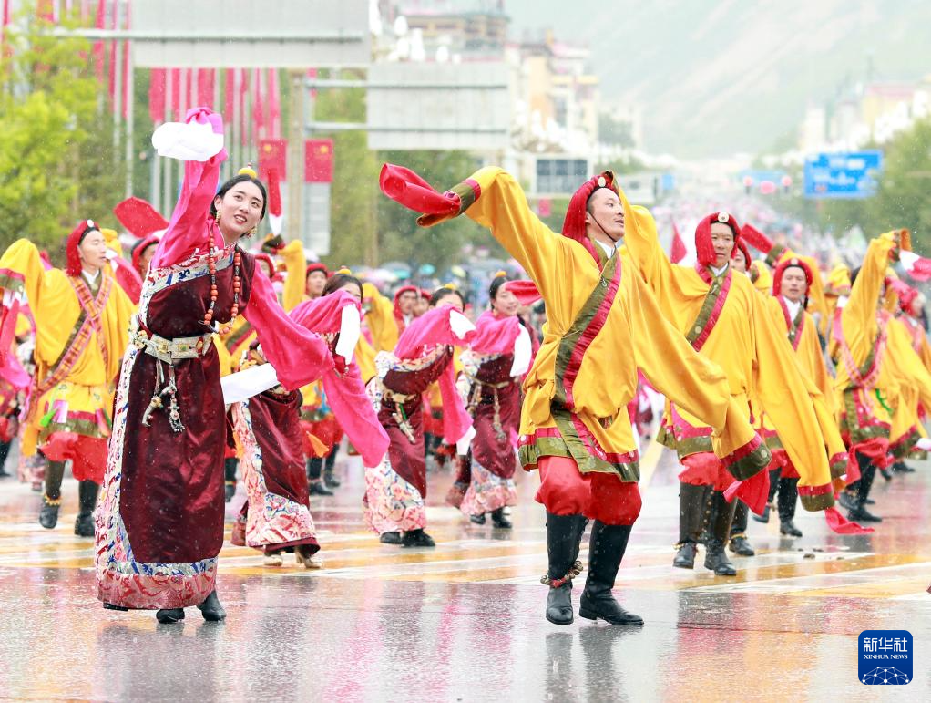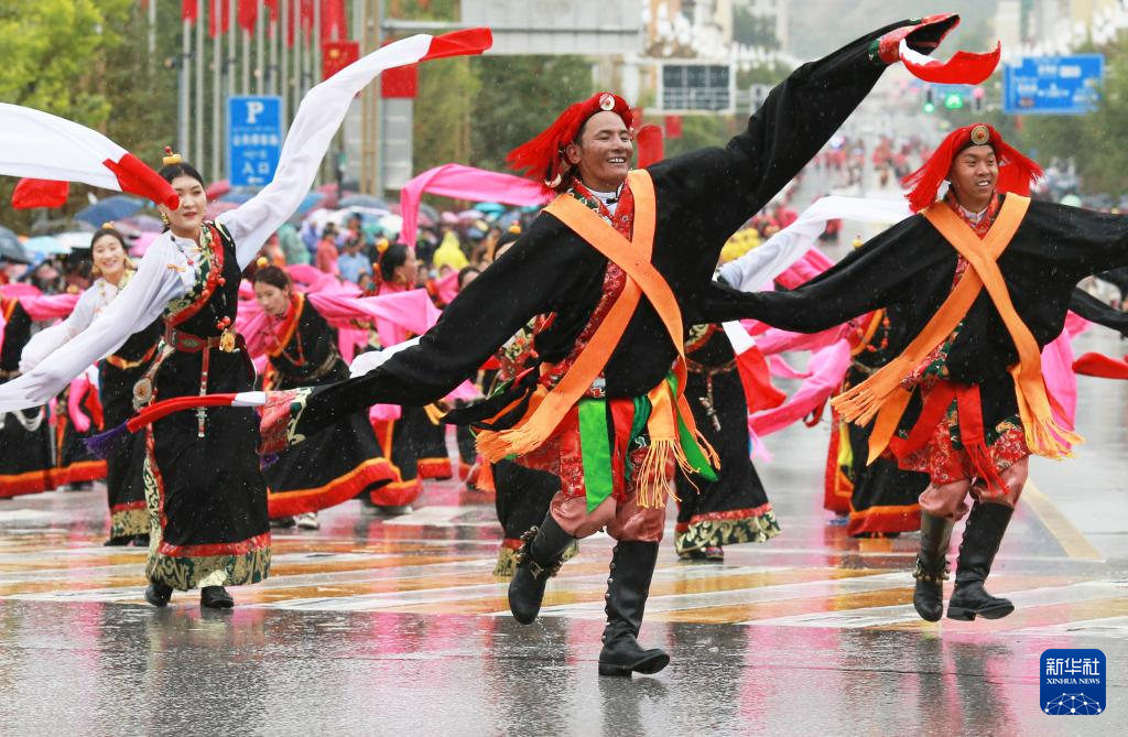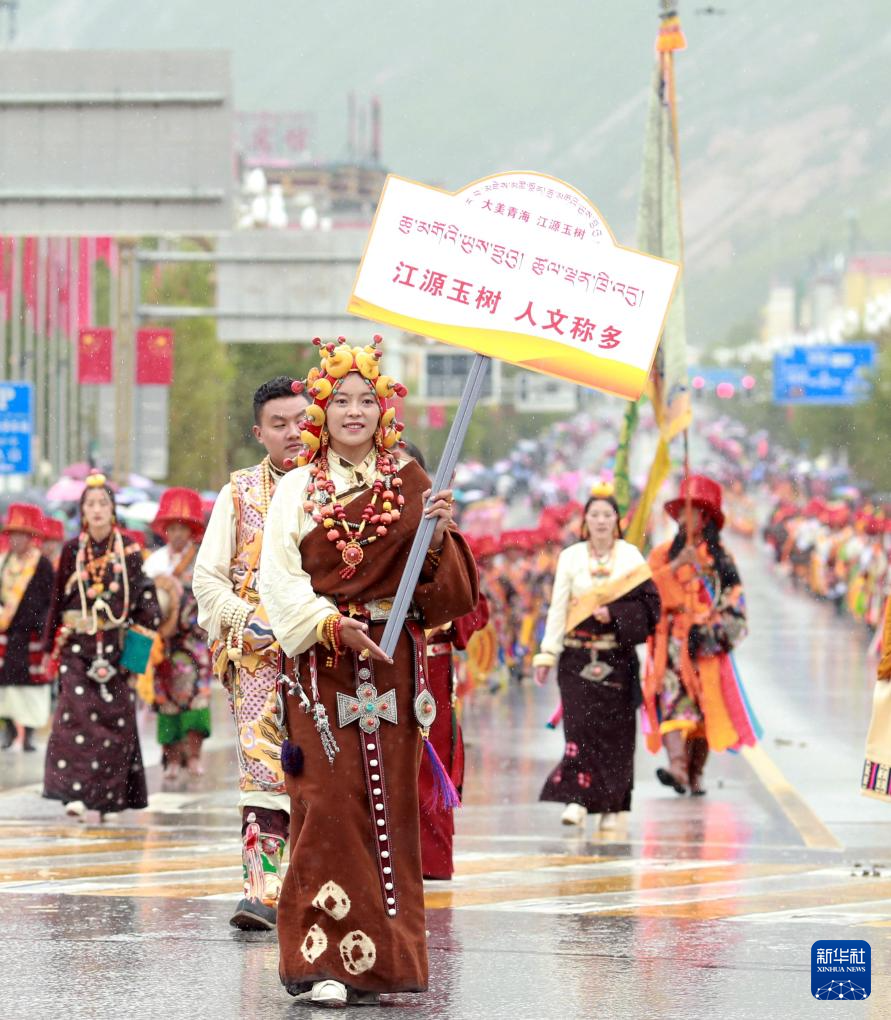 当日,“潇洒的康巴人”巡游活动在青海省玉树藏族自治州玉树市举行。多个方队进行巡游表演,展示藏族独特的民俗文化。