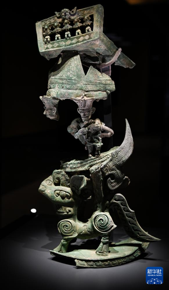 这是7月17日在三星堆博物馆新馆拍摄的青铜神坛(残件)。