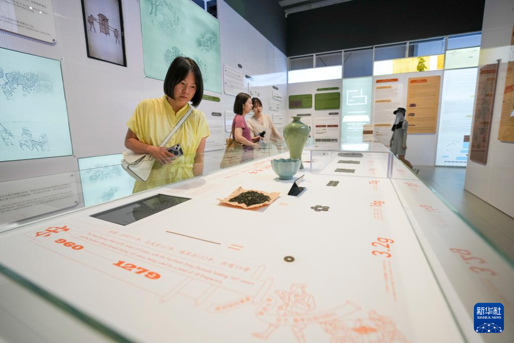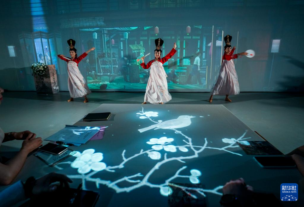 7月31日,演员在《画游清明上河――故宫沉浸艺术展》孙羊店全沉浸光影空间内展示宋朝时期的文化生活。