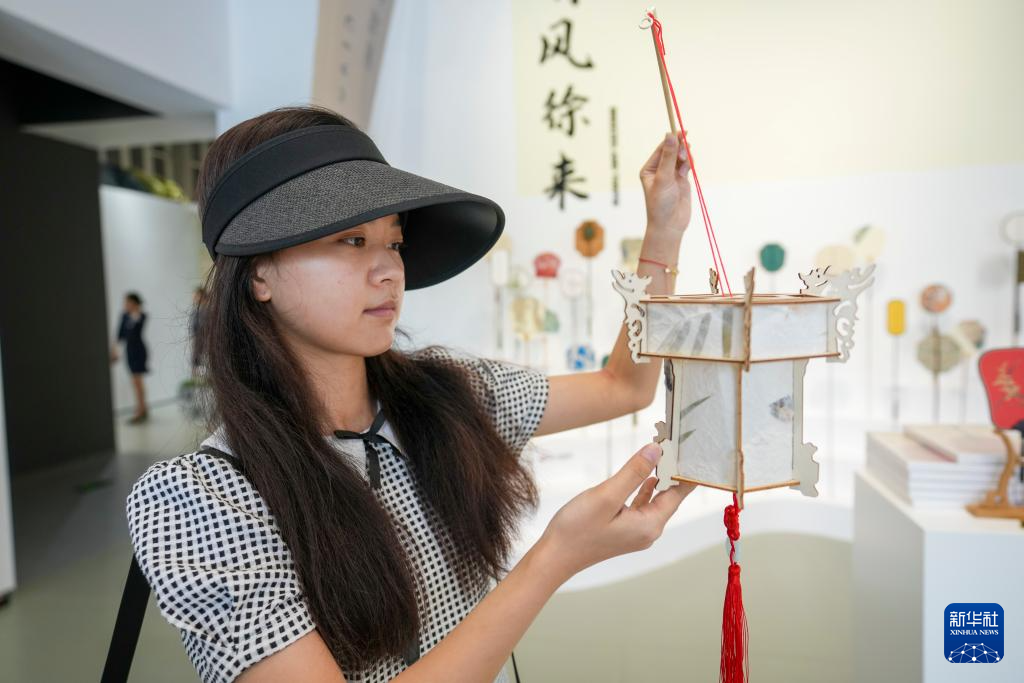 7月31日,游客在《画游清明上河――故宫沉浸艺术展》的一个展厅内欣赏灯笼。