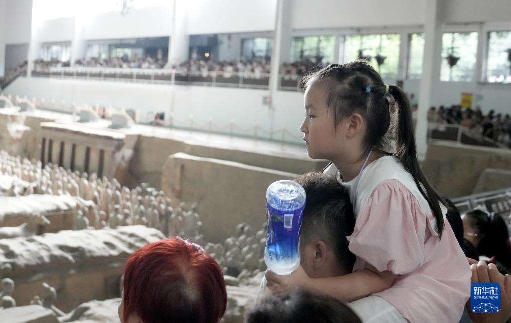 暑期将尽,但位于陕西西安临潼区的秦始皇兵马俑博物馆旅游热度不减,前来参观的游客摩肩接踵。