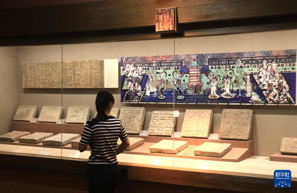 8月27日,游客在甘肃省敦煌市博物馆参观。