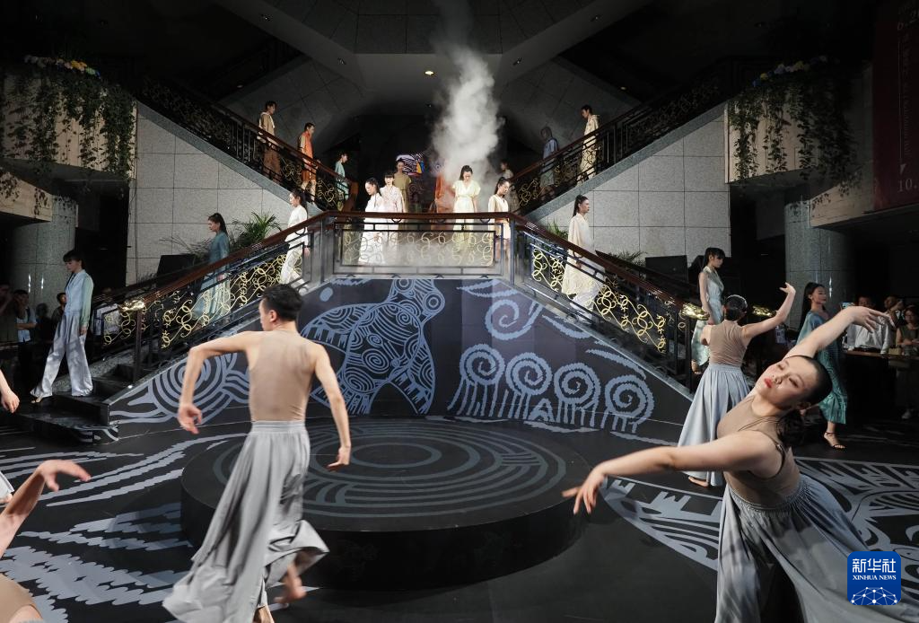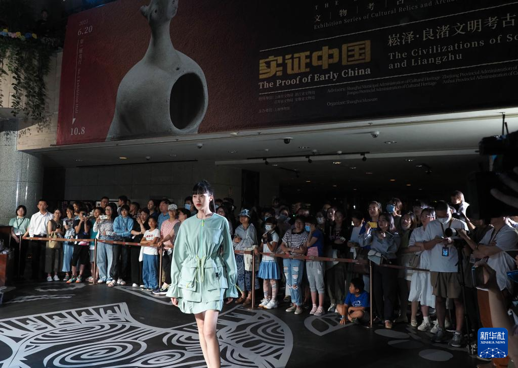 当日,上海博物馆携手杭州良渚遗址管理区管理委员会推出“研色·良渚之夜”沉浸式综合艺术秀演出。作为“何以中国”系列大展的第二展“实证中国:崧泽·良渚文明考古特展”的活动之一,“研色·良渚之夜”采用现代舞、服装秀、音乐秀和数字投影灯光秀等多种舞台艺术形式,结合良渚核心色彩和文化元素,让观众沉浸式体验良渚穿越五千年的美学文化。