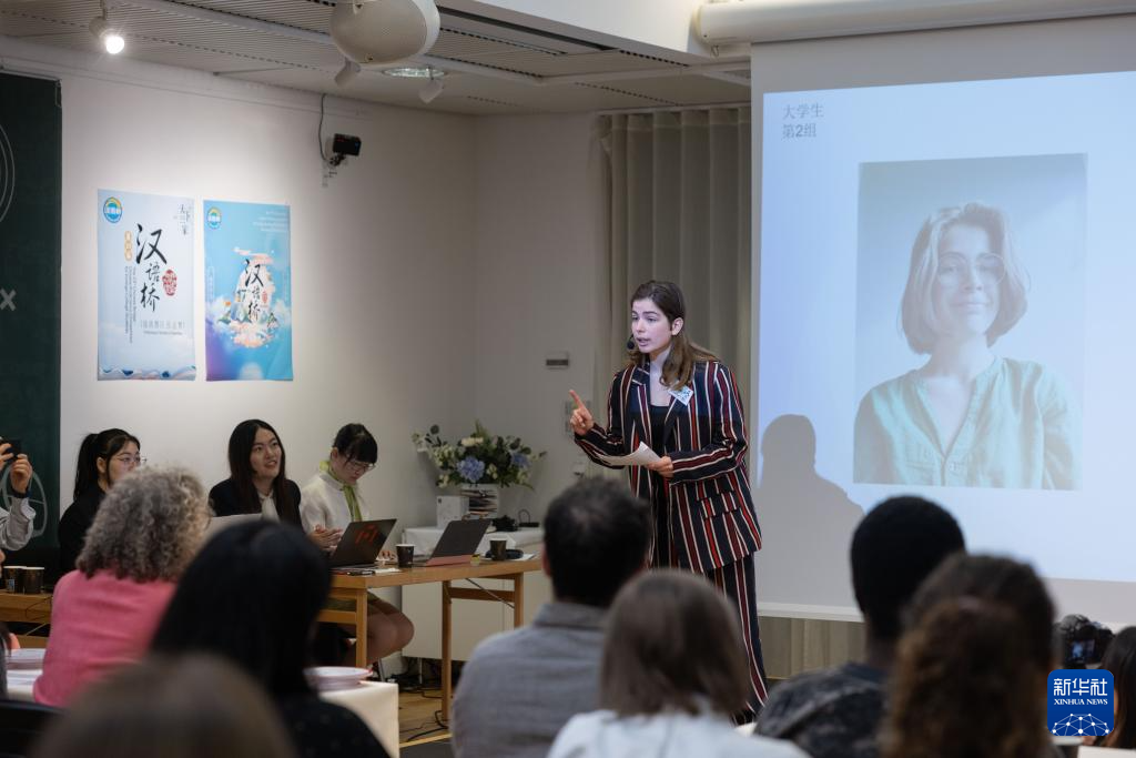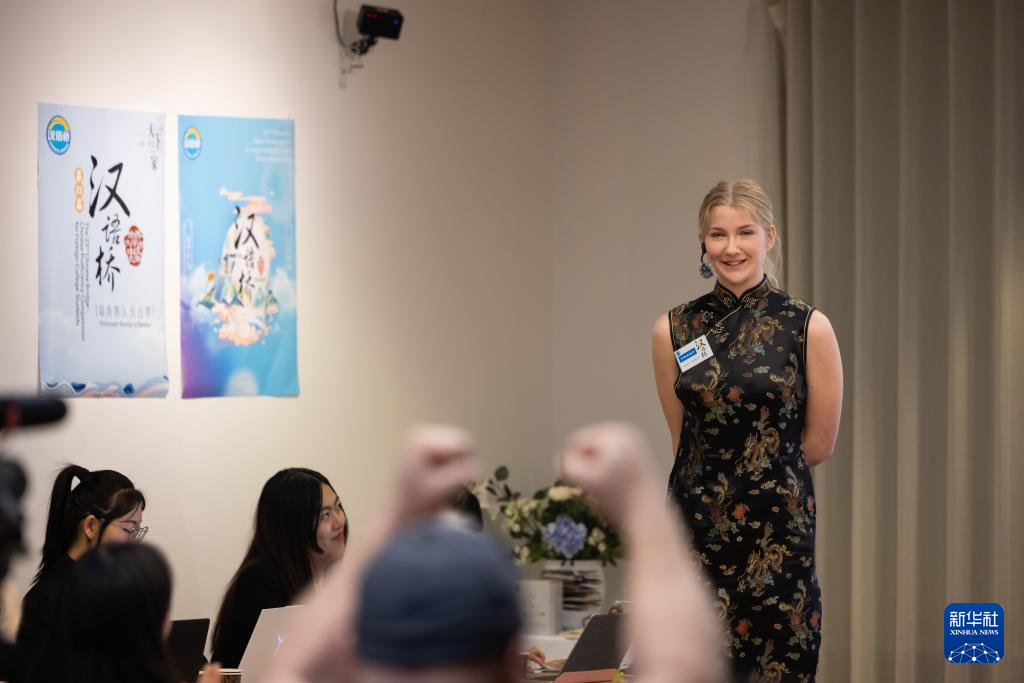 5月5日,在瑞典首都斯德哥尔摩的中国文化中心,参赛学生进行中文水平和才艺展示。