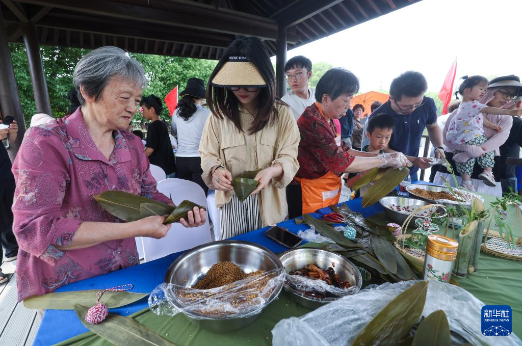 当日,浙江省湖州市吴兴区东林镇举办“庆端午 划菱桶”水乡端午趣味民俗活动,来自东林镇各村的村民们在泉益村参加了水乡划菱桶比赛、荷塘钓小龙虾、做艾草花束、包粽子等端午趣味民俗活动,在初夏时节呈现江南水乡特有的迎端午气氛。
