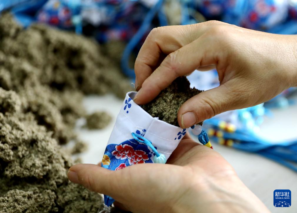 6月4日,河南省济源市下冶镇大岭村群众在制作端午香包。
