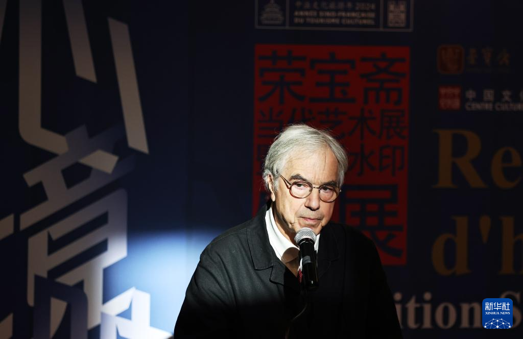 12月20日,在法国巴黎中国文化中心,法国艺术家雷米·阿龙在“心境映象——荣宝斋当代艺术展暨木版水印特展”开幕式上致辞。