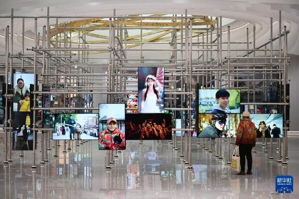 1月1日,游客在位于西安市浐灞国际港的长安云“一带一路”城市展示体验中心参观摄影展。