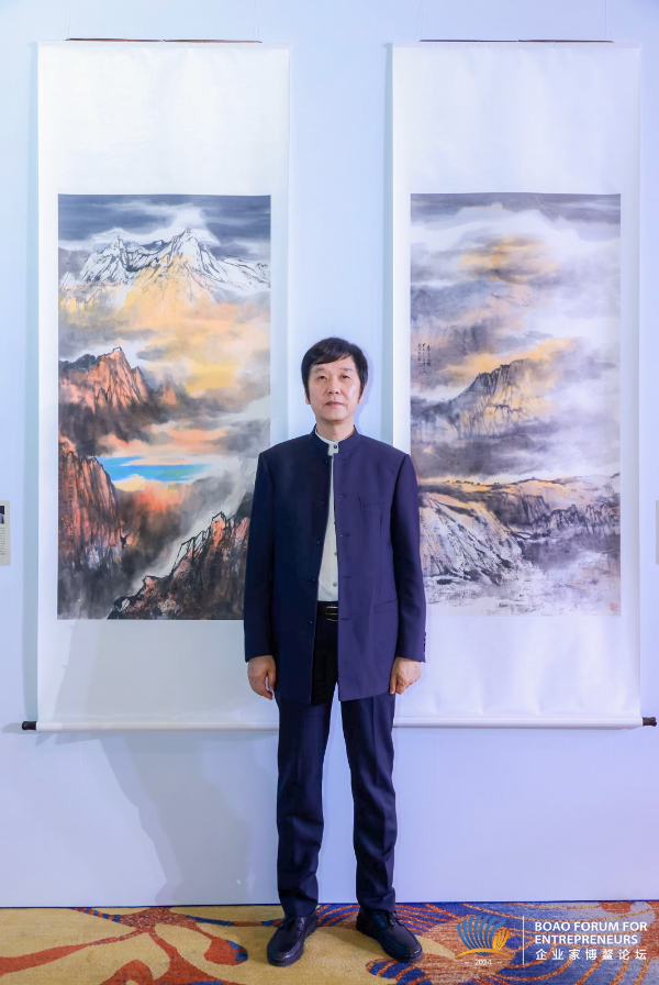 唐天源及其在“文化西藏 天上画卷·高原高峰艺术家西藏行”精品展上展出的作品