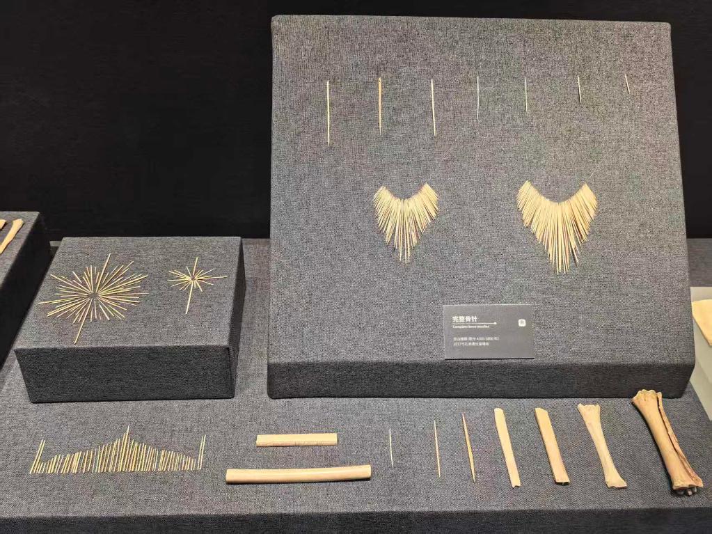 石峁博物馆珍藏的骨针。新华社记者张京品 摄