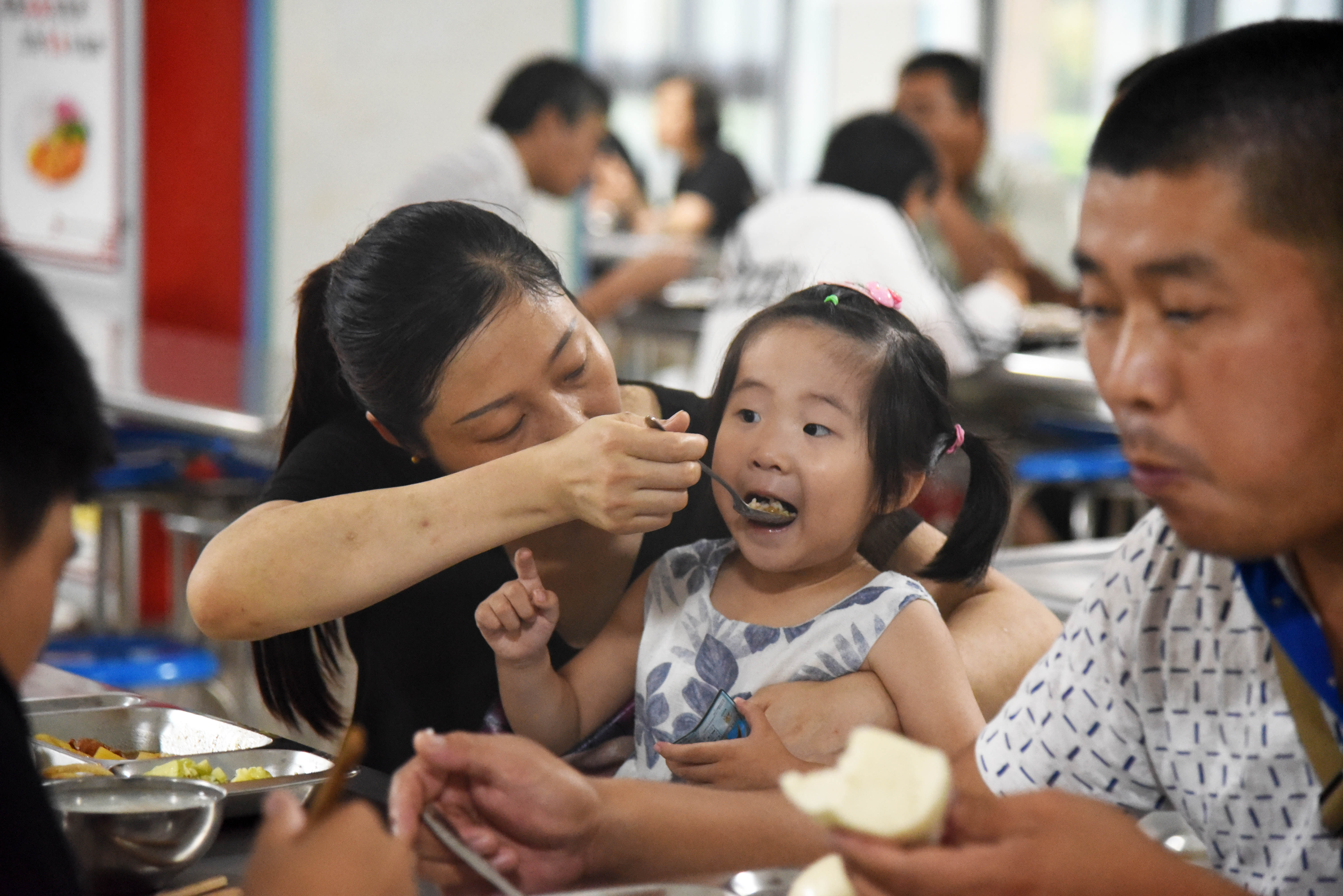People have meals at a middle school, which now serves as a relocation site, in Shouguang, E China's Shandong Province. (Xinhua/Wang Kai)
