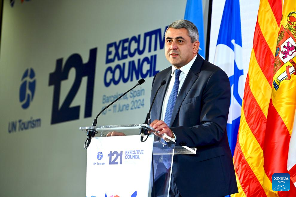 This file photo taken on June 11, 2024 shows UN Tourism Secretary-General Zurab Pololikashvili in Barcelona, Spain. TO GO WITH "Interview: China's "Golden Week Plus" highlights global tourism impact, UN Tourism chief says" (UN Tourism/Handout via Xinhua)