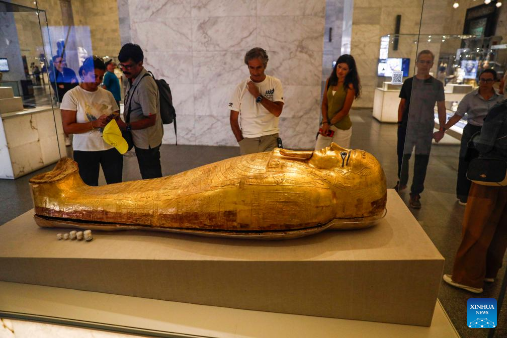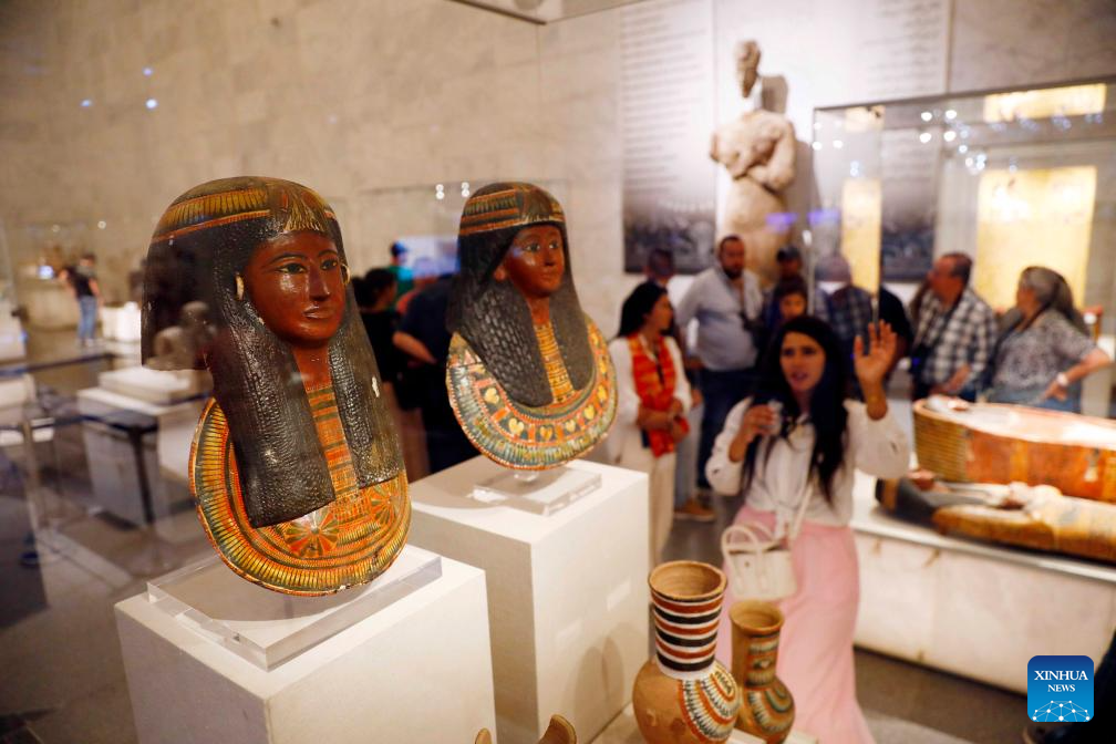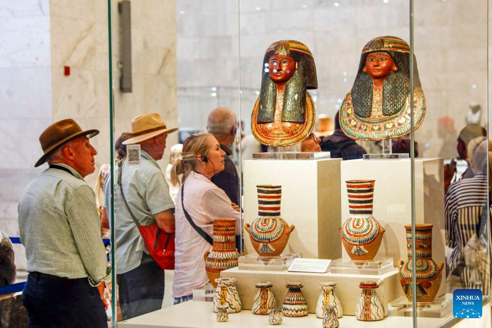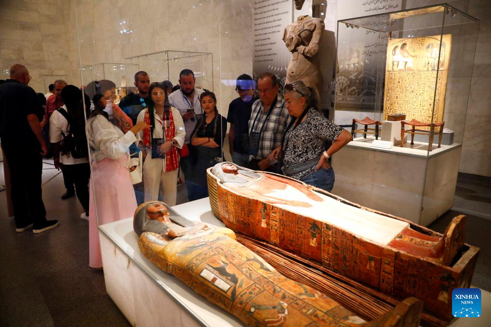 Tourists view exhibits at the National Museum of Egyptian Civilization on the occasion of World Tourism Day in Cairo, Egypt, on Sept. 27, 2025. (Xinhua/Ahmed Gomaa)