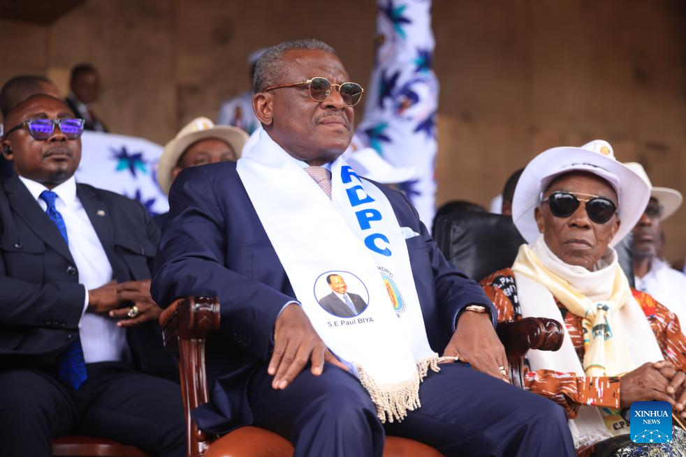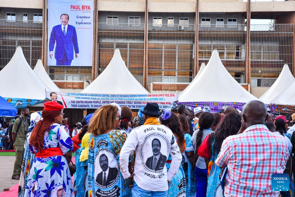 This photo taken on Sept. 27, 2025 shows people attending the Cameroon People's Democratic Movement (CPDM) candidate's opening campaign rally in Yaounde, capital of Cameroon. Cameroon's presidential race officially began on Saturday, with 12 candidates, including one woman, vying for the country's highest office. The campaign will last for two weeks, culminating in the presidential election on Oct. 12. (Xinhua/Kepseu)