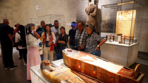 Tourists view exhibits on occasion of World Tourism Day in Cairo, Egypt