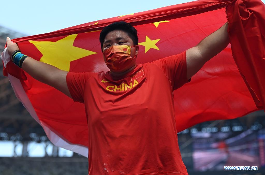 TOKYO, Aug. 1 (Xinhua) -- China's Gong Lijiao dominated in women's shot put at Tokyo Olympics on Sunday, winning her first Olympic gold medal. The victory marked China's first Olympic gold in field events.