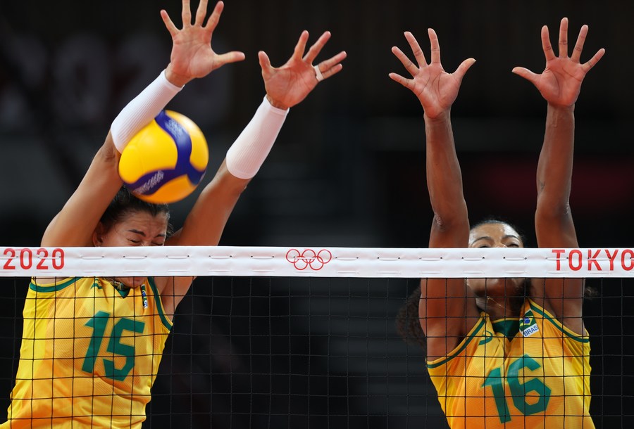 TOKYO, Aug. 8 (Xinhua) -- The United States swept Brazil 3-0 in the women's volleyball final here on Sunday to win their first Olympic gold medal.