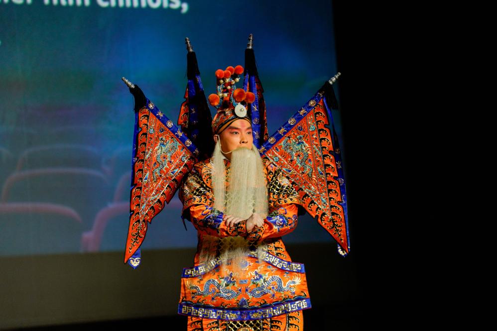 9月22日,京剧演员谭正岩在音乐会上表演京剧《定军山》片段。新华社记者 谢晗 摄