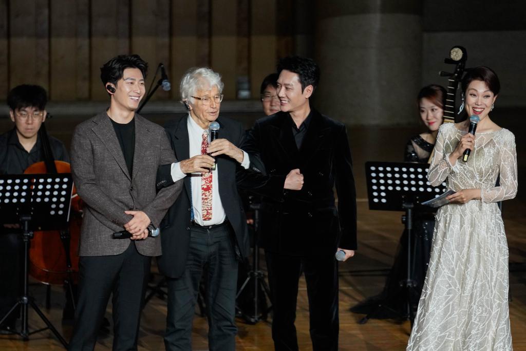 9月22日,电影《封神第一部:朝歌风云》导演乌尔善(左二)、音乐总监蒙柯卓兰(右二)在音乐会上互动。新华社记者 谢晗 摄
