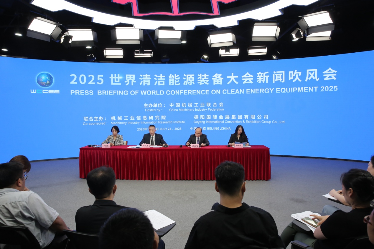 7月24日,2025世界清洁能源装备大会(WCCEE2025)新闻吹风会在北京召开。中国机械工业联合会执行副会长罗俊杰,机械工业信息研究院副院长缪立进,德阳国际会展集团有限公司董事长蒋春霞出席,详细介绍了大会的重要意义、亮点及筹备情况。