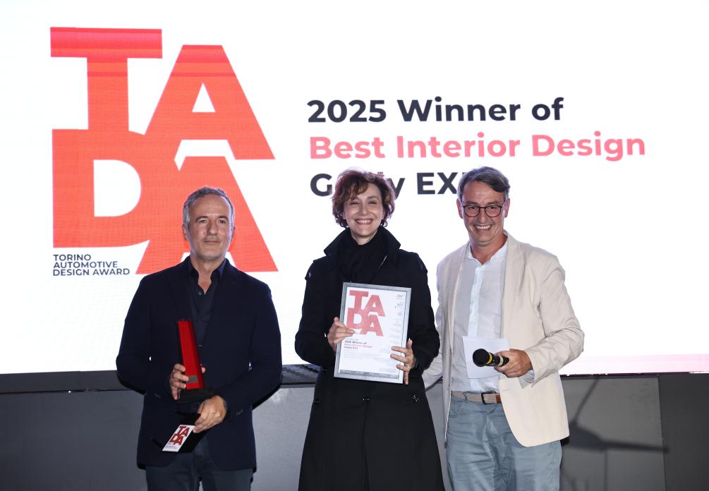9月26日,在意大利都灵,荣获“都灵汽车设计奖”最佳内饰设计奖的吉利“银河E5”代表领奖。