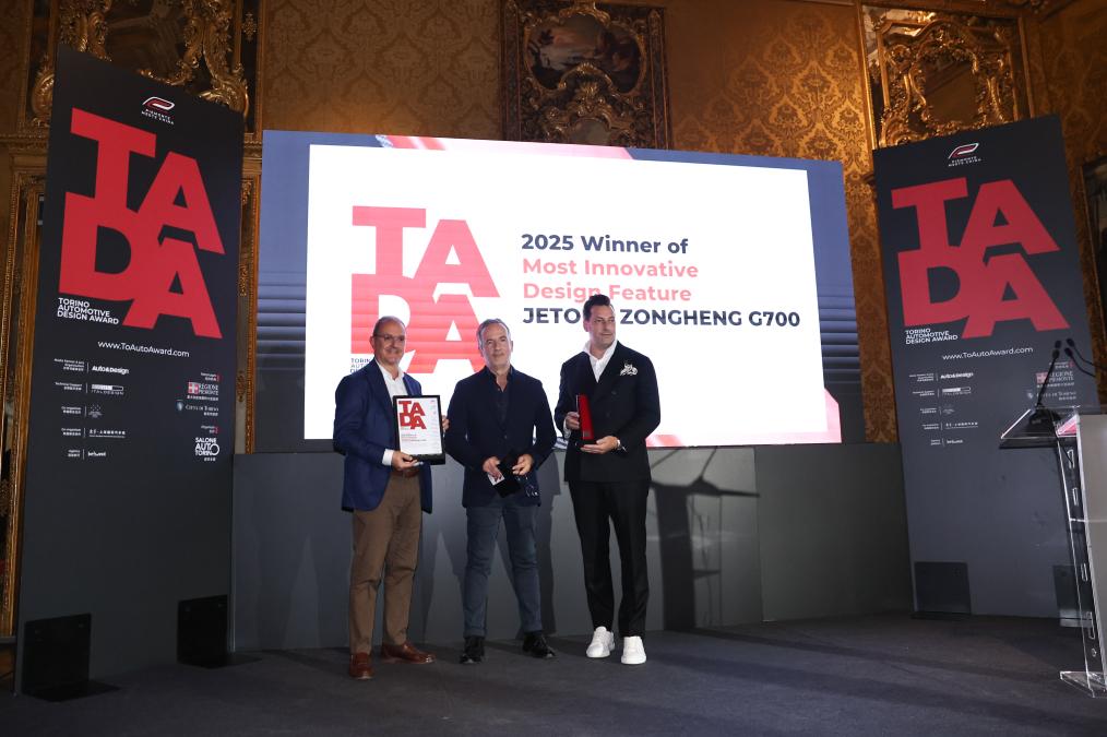 9月26日,在意大利都灵,荣获“都灵汽车设计奖”最佳创新设计奖的捷途“纵横G700”代表领奖。