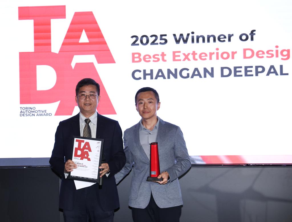 9月26日,在意大利都灵,荣获“都灵汽车设计奖”最佳外观设计奖的长安“深蓝S07”代表领奖。