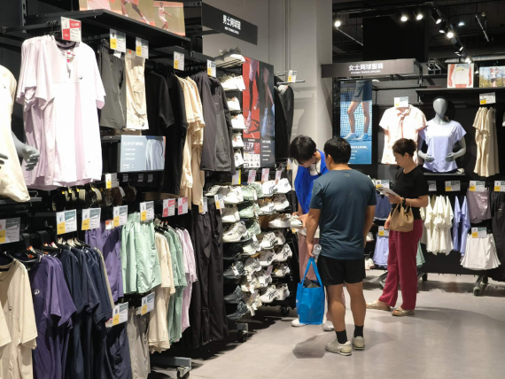7月20日迪卡侬门店网球服饰专区消费者正在挑选网球鞋 新华网高昕怡摄