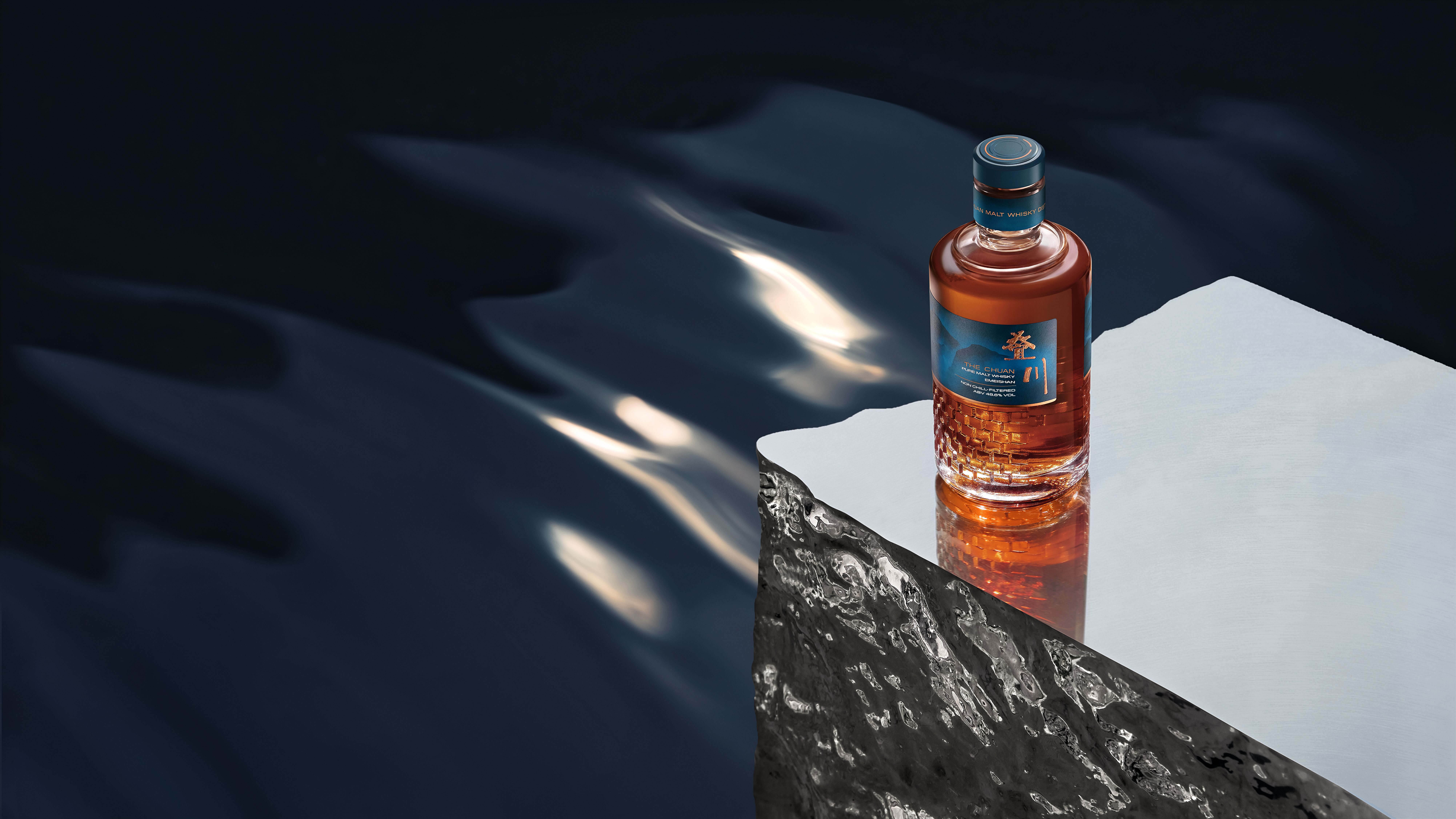 这款免税限定版的瓶身与外包装设计融入了中国水墨写意画面,以山峦之蓝勾勒峨眉山景与流水意象,同时用寓意“光与影”的砖块图纹巧妙呼应叠川酒厂标志性建筑“品川阁”,将传统美学与现代设计语言相融合,传递叠川酒厂所在之地峨眉的本地风土形象。除此之外,免税限定版更加以定制旅行标签精致点缀,是旅行家们旅途中用以纪念或赠礼的理想选择。