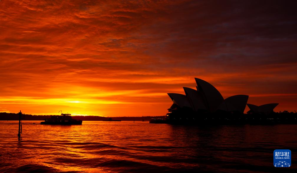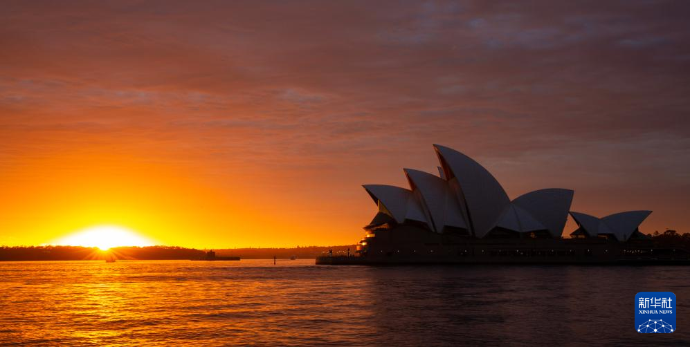 这是8月27日清晨拍摄的澳大利亚悉尼歌剧院日出景色。