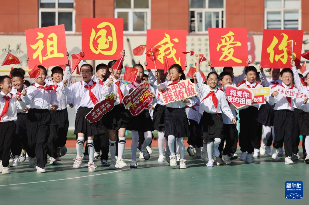 9月25日,在湖北省武汉市,未来实验小学学生开展迎国庆主题活动。