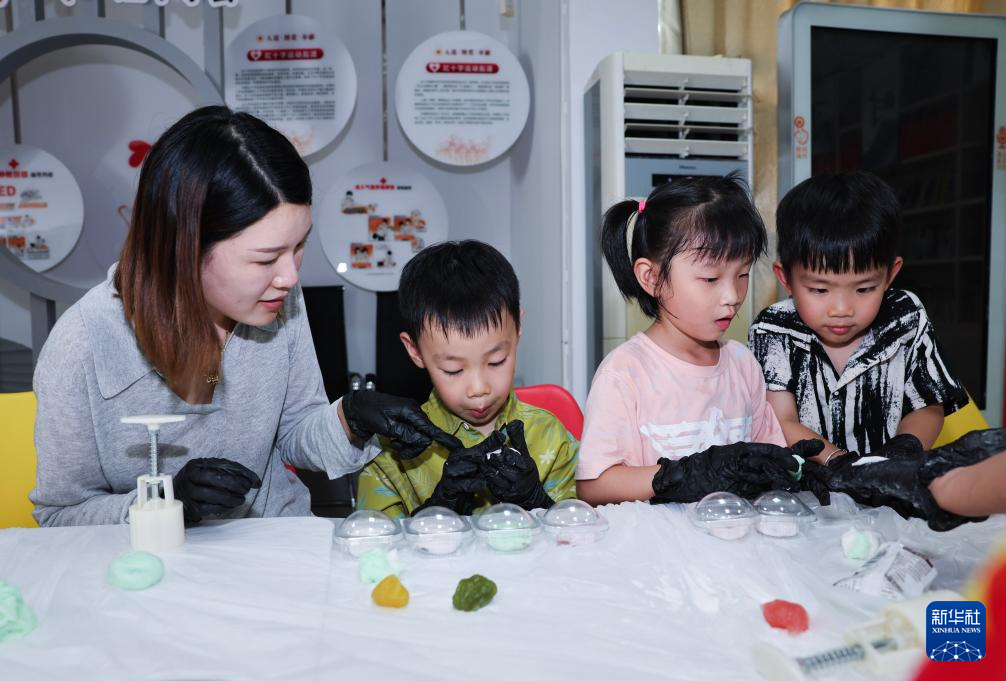 9月25日,浙江省嘉兴市南湖区南湖街道烟雨社区开展亲子月饼制作活动,孩子们在体验传统技艺的过程中感受文化魅力。