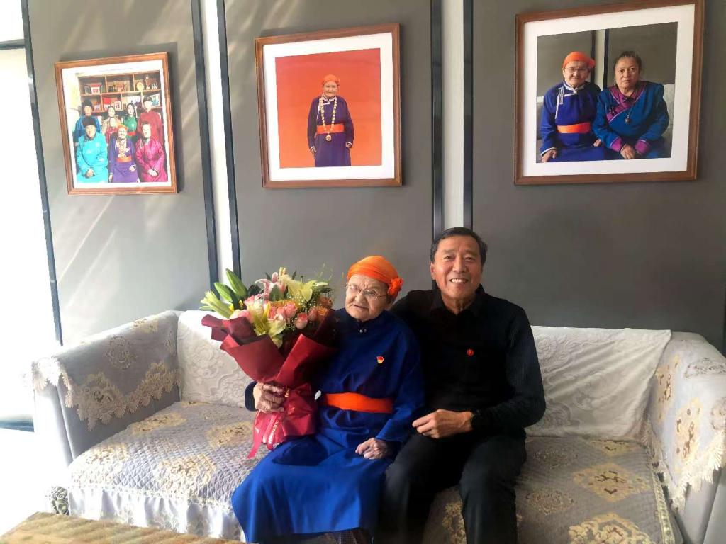 2025年6月,孙保卫(右)探望“草原额吉”都贵玛(受访者提供)。