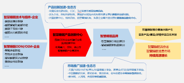谈到“智慧睡眠生态链”的运行逻辑,蔡畅表示,这些链要慢慢集聚形成一些智慧睡眠产品创新中心,是围绕ODM企业构建的行业级集成创新平台,在长三角、珠三角等智慧睡眠产业集聚地落地布局。然后生态加速方参与进来,推动新品、优品频出。