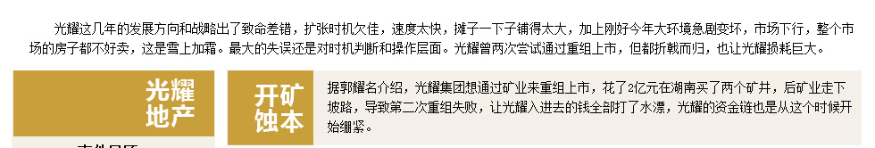 多家媒體報(bào)道稱光耀地產(chǎn)資金鏈斷裂瀕臨倒閉 |