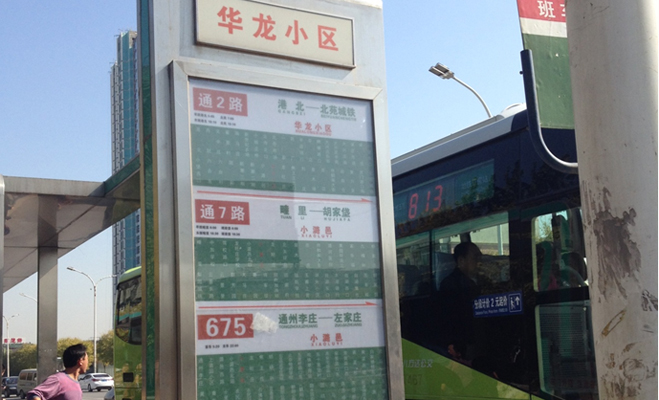 據(jù)記者實(shí)地觀察,距離珠江國際城最近的公交站——華龍小區(qū)站僅需步行5分鐘,通2路、通7路、675路等公交車,可以達(dá)到通州主要繁華地段,也可往來市區(qū)左家莊等區(qū)域。在20分鐘之內(nèi),僅有1輛675路公交車經(jīng)過。