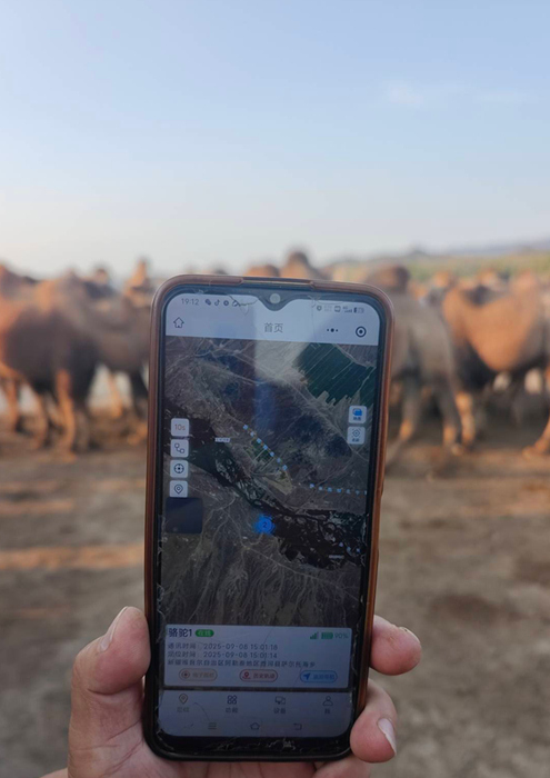 “以前的话不好找,两天三天,有时候一个星期都找不到。”木拉提·毕木拉说,之前要经常骑着摩托车到处找骆驼。现在骆驼戴上了中国移动的智慧项圈,通过手机查看就知道骆驼在哪里,再也不用为找骆驼发愁了。