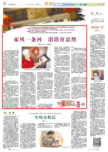 眼瞅著又快到建軍節(jié)了,昨個(gè)兒,我叫來大兒子敬朋,指著門楣上懸掛的“光榮之家”牌匾,對(duì)他說:“兒啊,把匾取下來,擦干凈,8月1日那天早上咱再掛上去,要讓早上的太陽,首先照亮它。因?yàn)椤褪窃奂掖鄠?、鮮血凝成的家風(fēng)??!”(楊知雪/口述 謝學(xué)楓/整理)