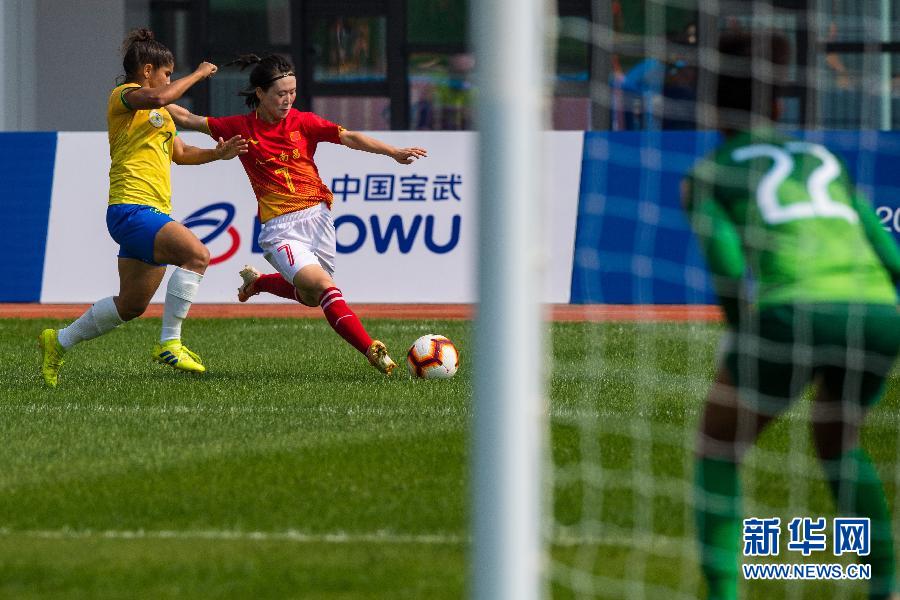 10月24日,中國隊球員劉艷秋(中)在比賽中突破傳球。 當日,在武漢舉行的第七屆世界軍人運動會女子足球半決賽中,中國隊以2比1戰(zhàn)勝巴西隊,晉級決賽。 新華社記者劉金海攝