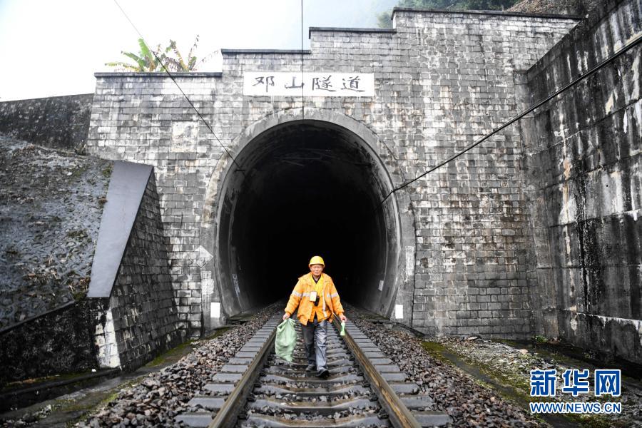 在廣西河池境內(nèi)黔桂鐵路線上的鄧山隧道,中國鐵路南寧局集團有限公司柳州工務(wù)段的4名看守工輪換值班,依靠手電筒在黑暗中穿行,及時巡查隧道中可能出現(xiàn)的各種隱患,確保每天經(jīng)隧道運行的59趟客貨列車春運安全。鄧山隧道全長773米,是一個需要人員全天候看守的鐵路隧道。
