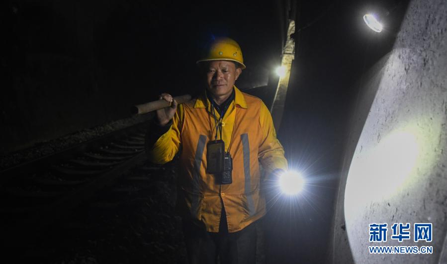 在廣西河池境內(nèi)黔桂鐵路線上的鄧山隧道,中國鐵路南寧局集團有限公司柳州工務段的4名看守工輪換值班,依靠手電筒在黑暗中穿行,及時巡查隧道中可能出現(xiàn)的各種隱患,確保每天經(jīng)隧道運行的59趟客貨列車春運安全。鄧山隧道全長773米,是一個需要人員全天候看守的鐵路隧道。