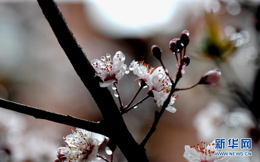 這是2月28日在上海市閔行區(qū)街頭綠地拍攝的雨中即景。