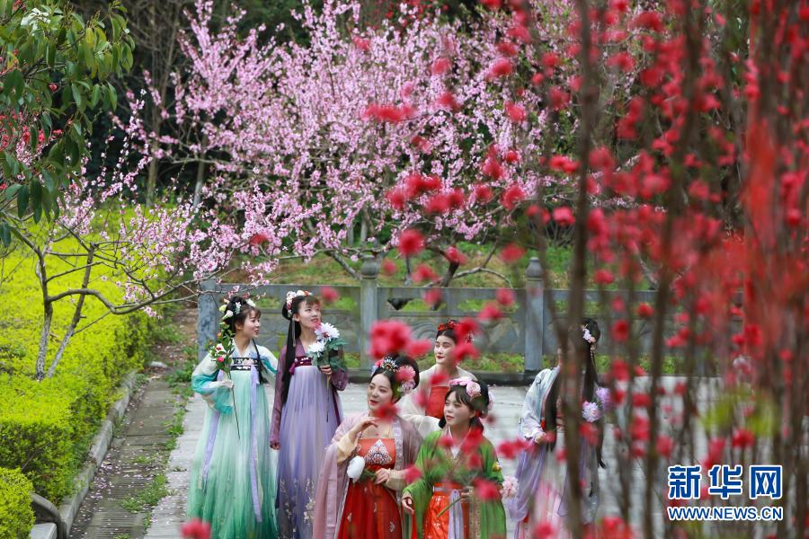 3月20日,在湖北省襄陽(yáng)市黃家灣景區(qū),漢服愛(ài)好者踏青賞花。
