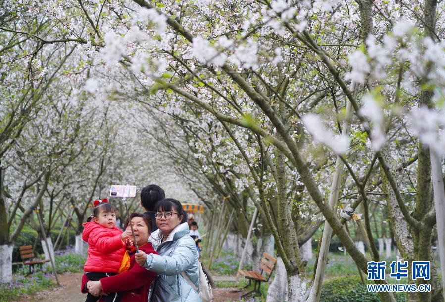 近日,江西省南昌縣鳳凰溝景區(qū)3萬株櫻花競(jìng)相綻放,吸引游客前來賞花踏青,樂享春光美景。
