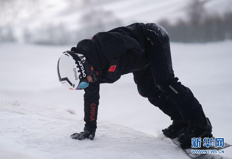 3月20日,冬殘奧會(huì)國(guó)家集訓(xùn)隊(duì)單板滑雪運(yùn)動(dòng)員汪志鵬在冬殘奧會(huì)訓(xùn)練基地訓(xùn)練時(shí)摔倒后起身。新華社記者 才揚(yáng) 攝